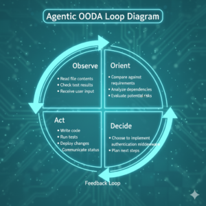 Diagram of Observe, Orient, Act and Decide feedback loop for AI Agents